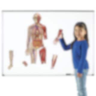 Demonstrationsmaterial som visar hur vår fantastiska kropp ser ut inuti! Materialet består av 17 dubbelsidiga delar: ena sidan visar skelettet, och den andra sidan visar muskler och inre organ. Delarna är magnetiska och fäster bra på whiteboardtavlan. Med alla delar monterade på rätt plats blir kroppen 100 cm lång.