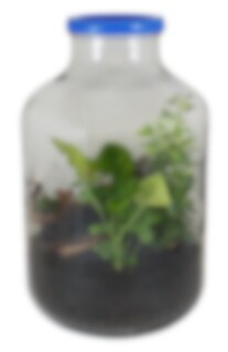 Innehåller: 1 damejeanne, 1 lock, häfte med anvisningar, skötselråd och fakta om naturens kretslopp.
