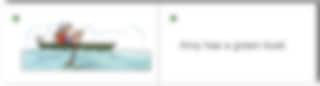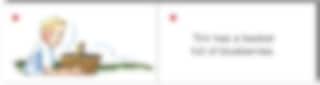 Meningar som: Peter has a blue book. Fiona has a buggy. Alla meningar är skrivna i presens.