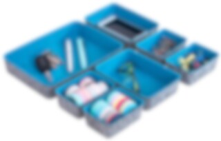 Innehåller: 7 förvaringsbrickor i 3 olika storlekar. Material: 100 % polyester.