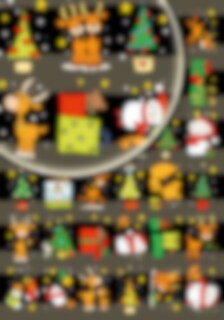 Stickers föreställande renar och andra julmotiv. Storlek på ett märke: ca 2 cm x 3 cm.