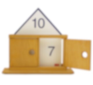 T.ex. ”I huset bor 7 figurer. 5 figurer bor i det ena rummet. Hur många bor i det andra?” Gå sedan vidare till talkorten. Sätt t.ex. i 7-korten. Siffrorna anger nu antalet figurer. På taket ser du hur många som bor i hela huset. Du kan variera att öppna den ena eller andra dörren och med ett ”täckkort” kan du även dölja taket. Öppna dörrarna och du ser hela talfamiljen.