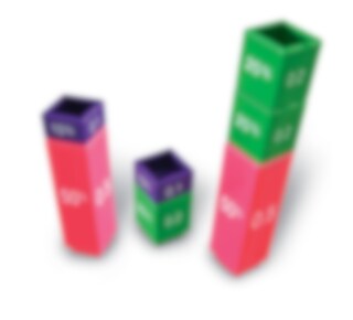 Innehåller: 9 bråkstaplar i olika färger enligt följande: 1/1, 1/2, 1/3, 1/4, 1/5, 1/6, 1/8, 1/10 och 1/12 (varje bit är märkt med respektive bråk-, decimal- och procenttal). Totalt 51 bitar. Obs, innehåller smådelar. Ej lämpligt för barn under 3 år.