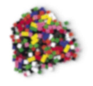 Innehåller: 1000 centikuber i tio färger, förpackade i en rejäl låda med snäpplås. Obs, ej lämplig för barn under 3 år. Innehåller smådelar.