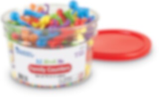 Innehåll: 72 counters i 6 färger och 6 former (5 personer och en katt), och 1 förvaringsburk med skruvlock. Figurerna är tillverkade av plast och den största av dem är ca 6 cm lång. Obs, innehåller smådelar. Ej lämplig för barn under 3 år.