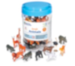 Innehåller: 60 counters i 12 olika former (exotiska djur), och 1 förvaringsburk med lock. Djuren är upp till 5 cm stora och tillverkade av plast. Obs, innehåller smådelar. Ej lämplig för barn under 3 år.