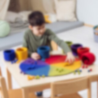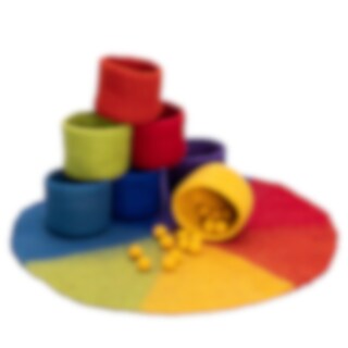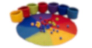 Innehåller: 1 matta som är indelad i 7 olika färgfält, 7 skålar och 112 bollar. Material: 100 % fårull.