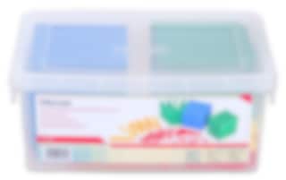 Innehåller: 100 entalskuber, 10 tiostavar, 10 hundraplattor och 1 tusenkub. Allt tillverkat av plast. Förvaringslåda med lock ingår.