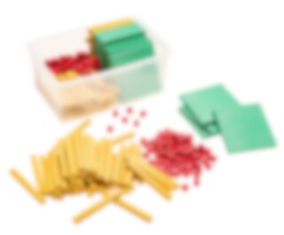 Entalet är en kub med sidlängden 1 cm, tiotalet är 10 cm långt, osv. Dessa mått gör att materialet också är användbart till olika mätövningar.