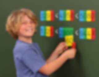 Talkorten är färgkodade på samma sätt som våra övriga positionsmaterial: röda ental, gula tiotal, gröna hundratal och blå tusental. Korten går att sätta ovanpå varandra för att bilda alla heltal från 0 till 9999.