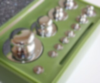 500 g-vikten är ca 58 mm hög. Lådan har måtten 41 x 66 x 78 mm.