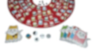 Innehåller: Av kartong: 1 spelplan i 6 delar, 6 kattformade protokollbräden och 56 poängknappar. Av trä: 1 tärning och 4 marker. Obs, ej lämplig för barn under 3 år. Innehåller smådelar.