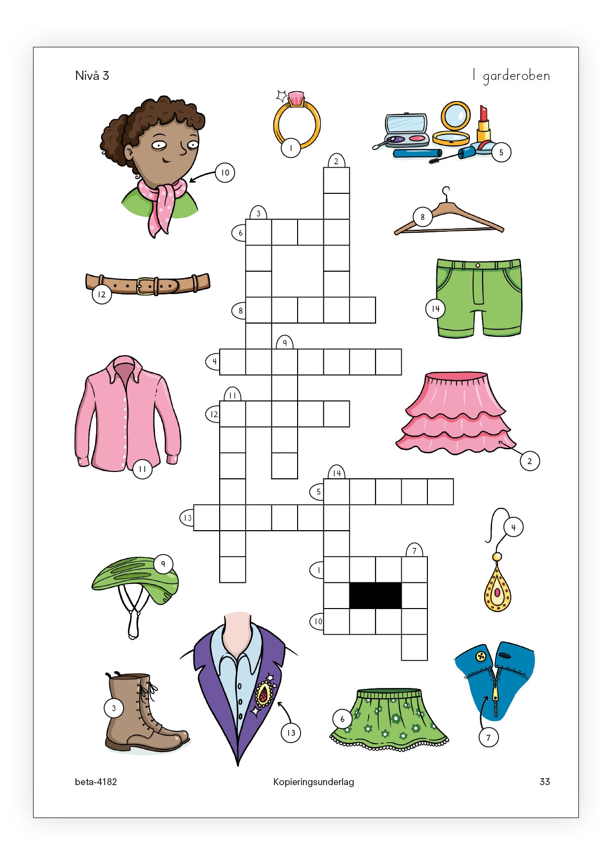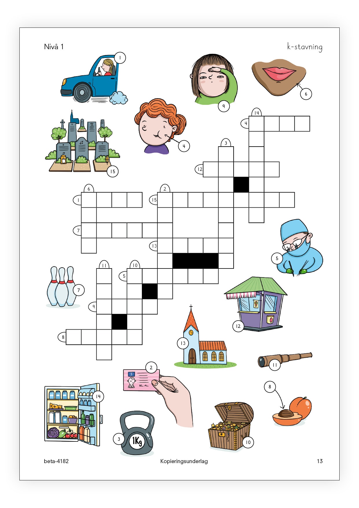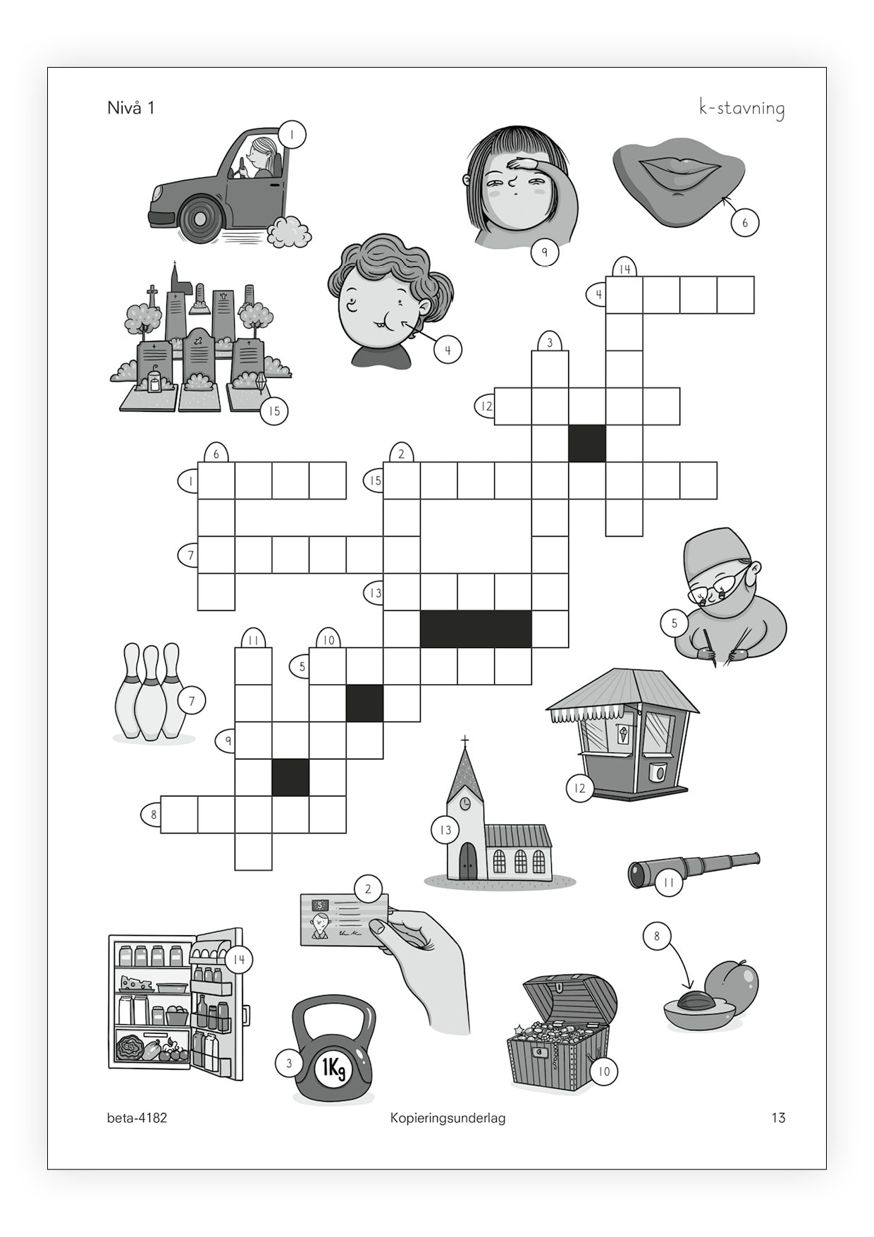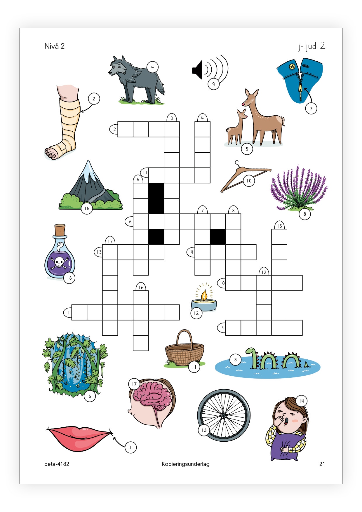 • Nivå 2 består av korsord som blandar olika sätt att stava ng-ljud, sj-ljud, j-ljud respektive tj-ljud.