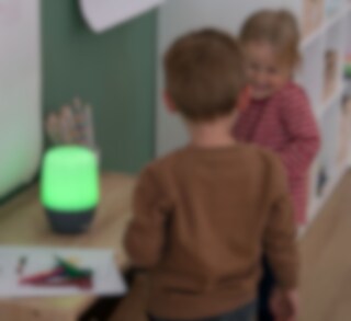 Innehåller: 1 ljudnivålampa med uppladdningsbart batteri. Laddkabel (USB-A till USB-C), samt manual på engelska medföljer.